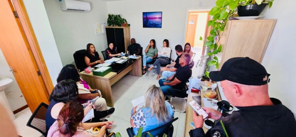 Nesta quinta-feira (16), a Secretaria de Desenvolvimento Social, Trabalho e Renda de Búzios realizou uma reunião com foco na abordagem social integrada à segurança pública. O encontro contou com a presença da secretária da pasta, Josiani Meira, e do secretário de Segurança, coronel Glaucio Moreira, do Secretário de Ordem Pública, Sérgio Ferreira, do jurídico da secretaria, além de representantes das coordenações da Gestão do SUAS, da Criança e do Adolescente, do Acolhimento Institucional, da Proteção Social Especial, do CREAS e dos profissionais que atuam diretamente na abordagem social no município.